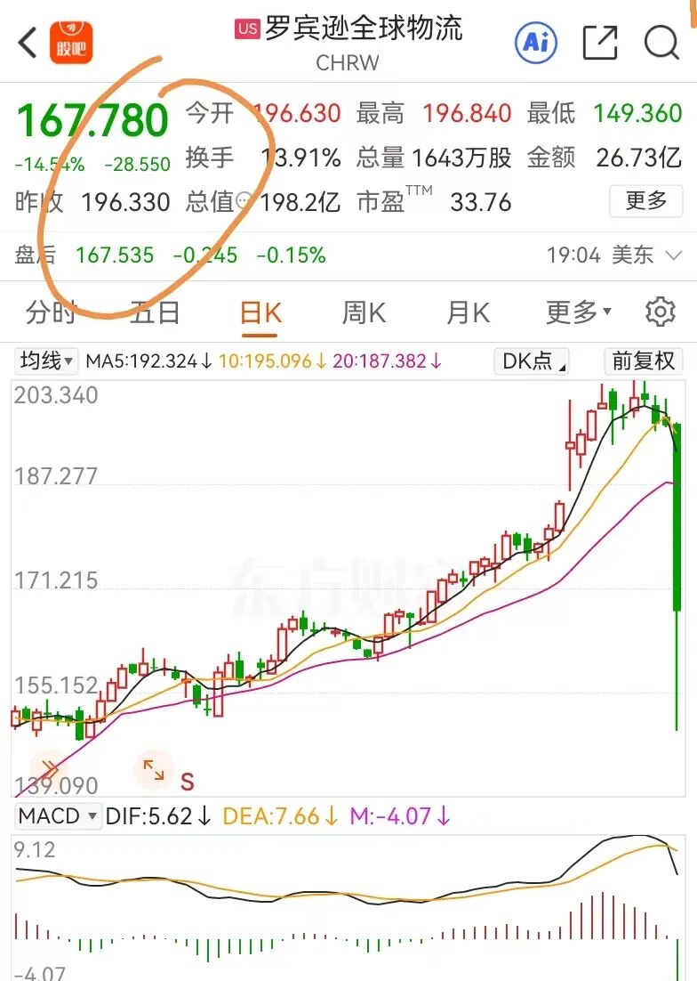 C.H. Robinson股价下跌约15%,创下自2019年以来最差的单日跌幅。Expeditors International of Washington下跌13%,创下自1998年以来最差单日表现。