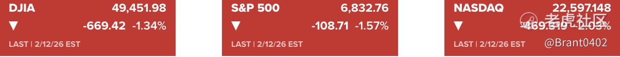 此外,市场正严阵以待周五即将公布的1月CPI报告,不确定性促使资金流向防御性板块。白银暴跌逾12%也加剧了负面情绪,进一步打击了风险偏好。