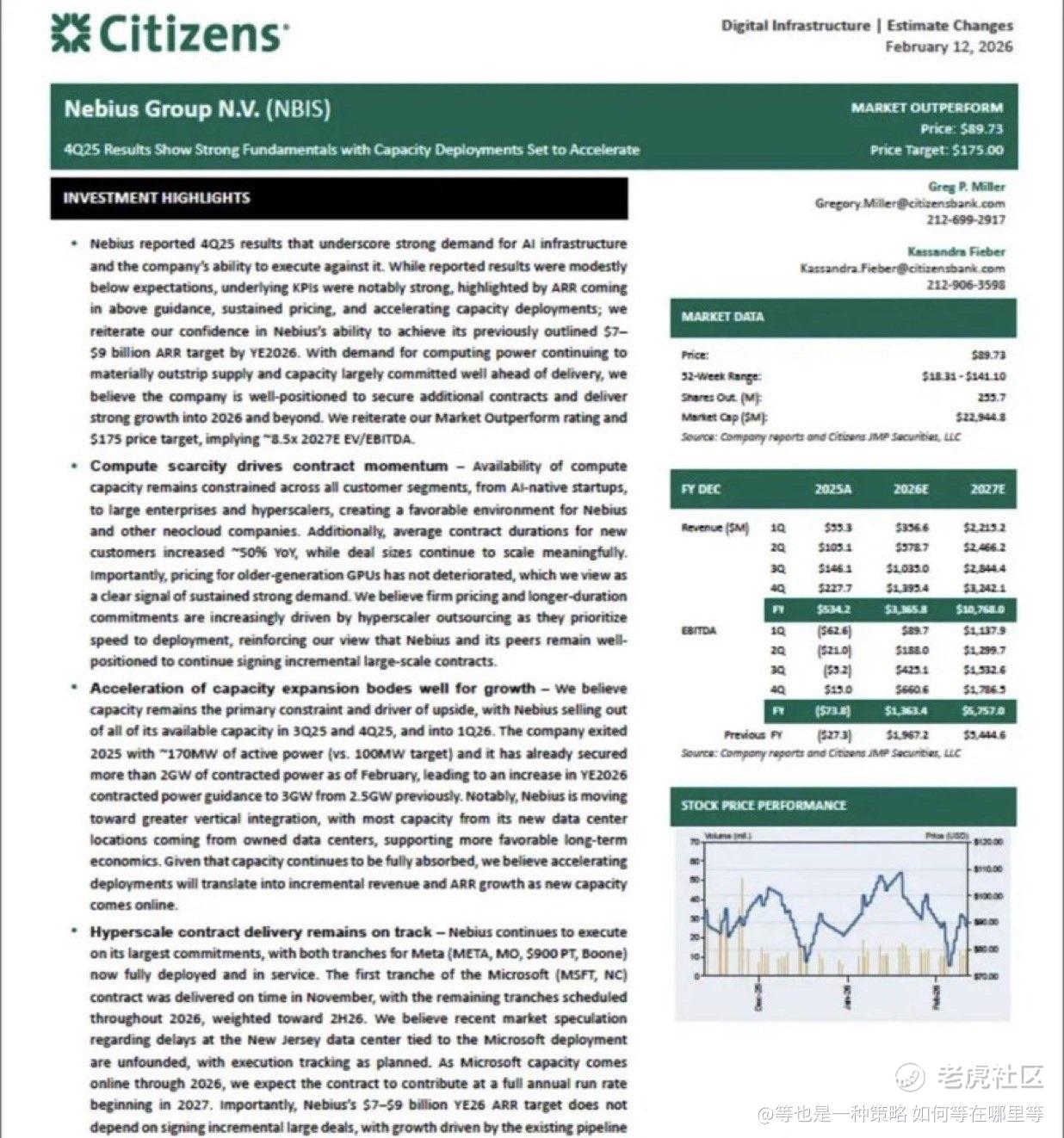 这次 Citizens 把 $NBIS 的 price target 从 $90 提高到 $175,不是小幅修正,而是对公司未来盈利能力与成长路径的重新定价。