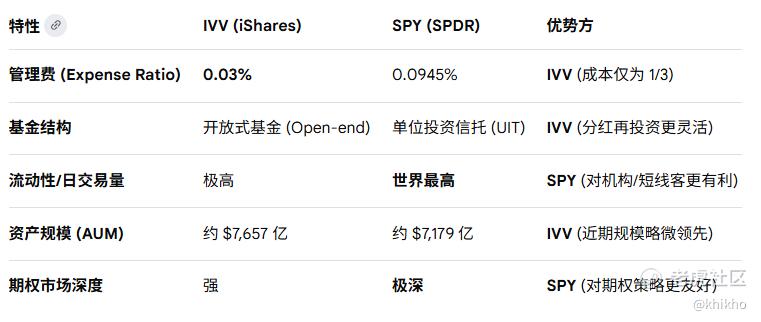 选IVV是为了长期投资,定期定额参与者或追求极致低成本。它是构建长线投资组合的理想核心资产。选SPY很可能就是是为了短线交易,专业机构也需要利用期权进行对冲和策略增强。其无与伦比的成交量能确保在任何市场环境下都能以理想价格快速成交。桥水选的2个,还2个都这么重本,大家就知道为什么了吧,哈哈。聪明人的聪明钱,都是用的很聪明的玩法啊。[鬼脸]