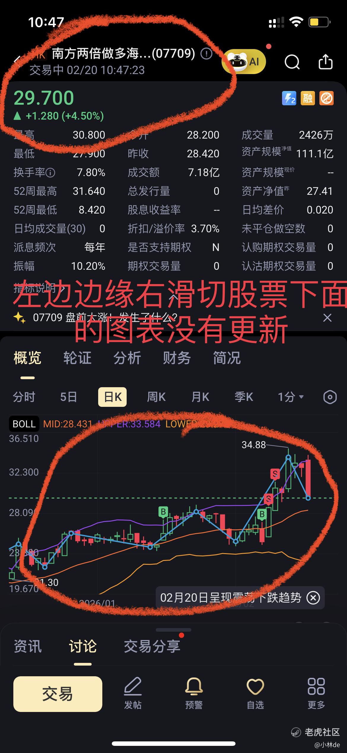左边边缘右滑切股票,下面的图表没有更新