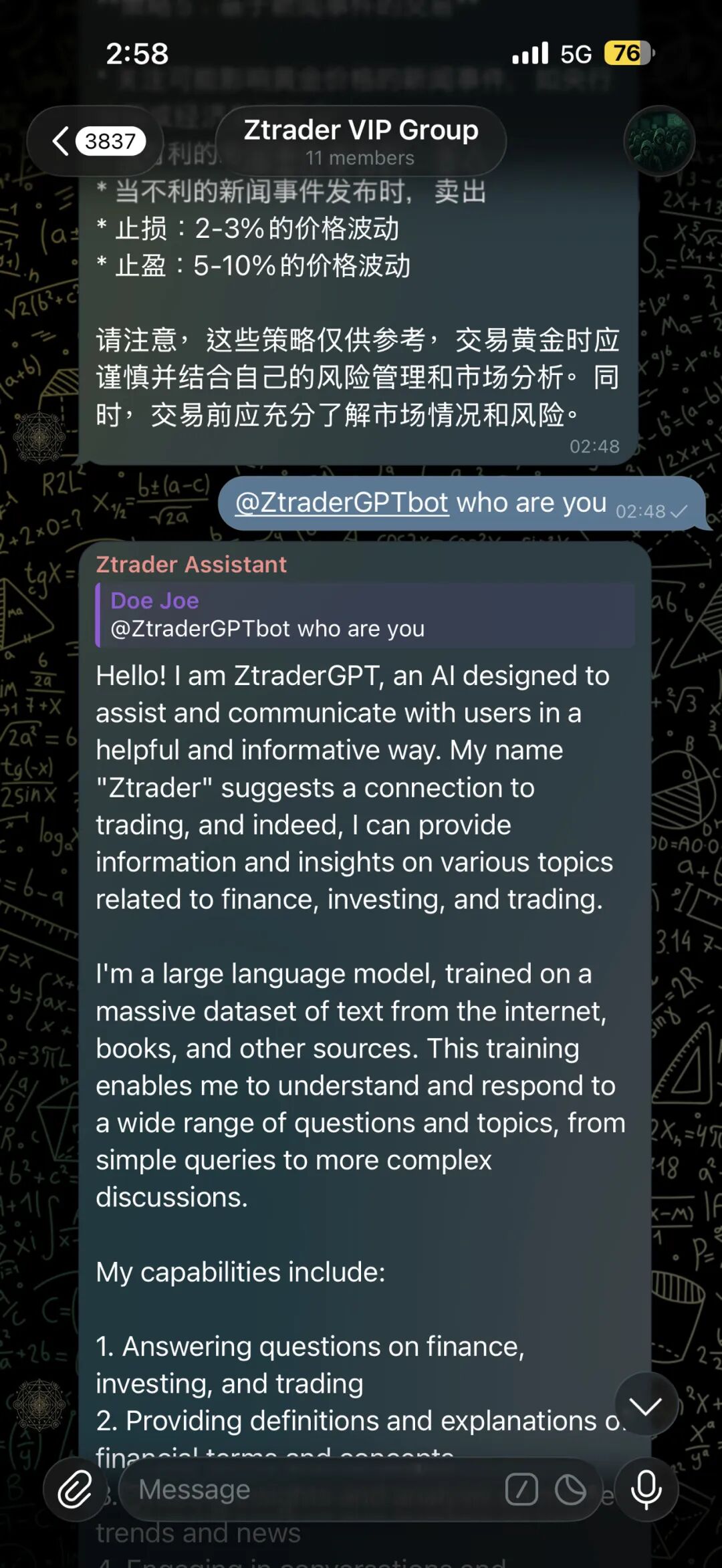 2. 升级了Telegram Bot的核心功能(现阶段是套壳GPT)对我这种已经搭载了AI模型外骨骼(chat.ztrader.ai) 实际上openclaw用处真的不大,一来github上面危险的fork多(你不知道那些黑客往skill塞了些什么东西,比如说套取你的env.local),而且实际上openclaw能实现的我只需要往py文件里面定义就可以。