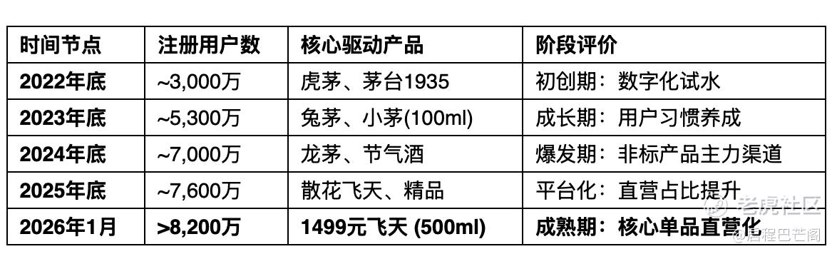 通过这张表,你可以清晰看到 i 茅台如何通过产品迭代实现用户阶梯式跳跃: