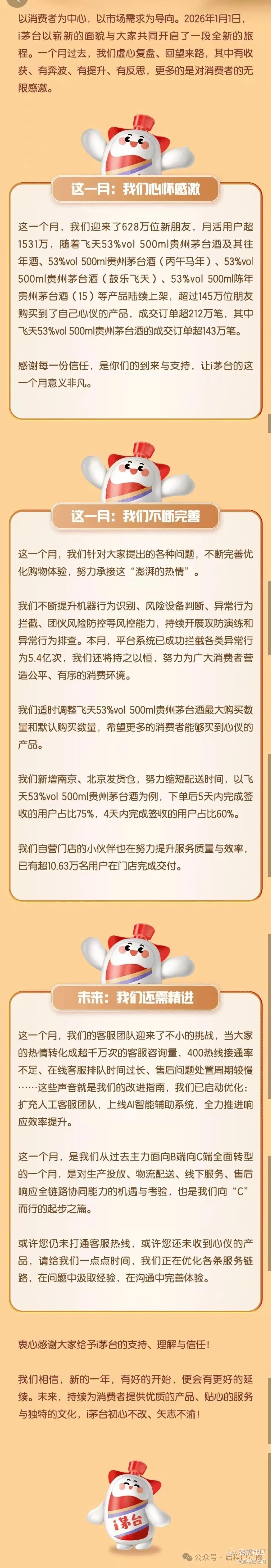 防御机制的考验:1 月份系统拦截了 5.4 亿次异常行为。这意味着虽然用户数激增,但茅台在通过算法剔除“科技党”,保证真实消费者触达方面投入了巨大成本,这也是保障直营化改革成功的核心。