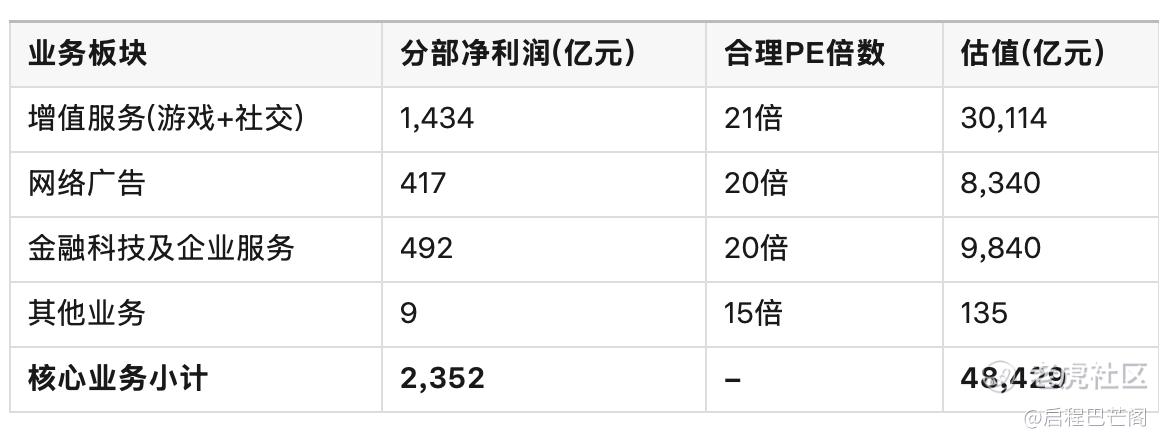 采用分部估值法,我们可以对腾讯各业务板块进行独立估值: