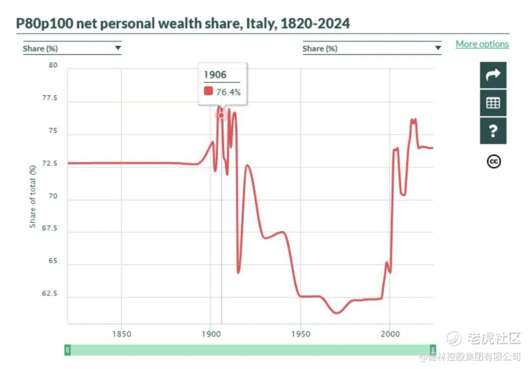 图1:1906年意大利前20%的人占有社会财富的76.4%,来源:公开资料整理