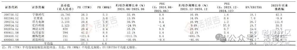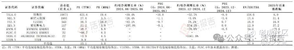 逆变器与系统集成领域的龙头阳光电源,更是展现出高成长与低估值的双重优势,56%的归母净利润增速对应约20.6x的PE,其PEG(市盈率相对盈利增长比率)远低于1。市场对于这类具备全球竞争力的A股储能龙头,在定价上或许仍存在明显的上涨空间。