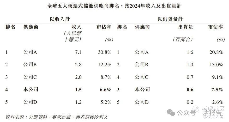 截至2024年,全球共有超过50家便携式储能供应商。以收入及出货量计,公司在全球便携式储能市场中均排名第四,分别占市场份额的6.6%及7.5%。