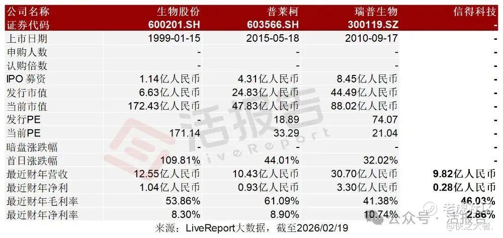 生物股份(600201.SH)、普莱柯(603566.SH)、瑞普生物(300119.SZ)