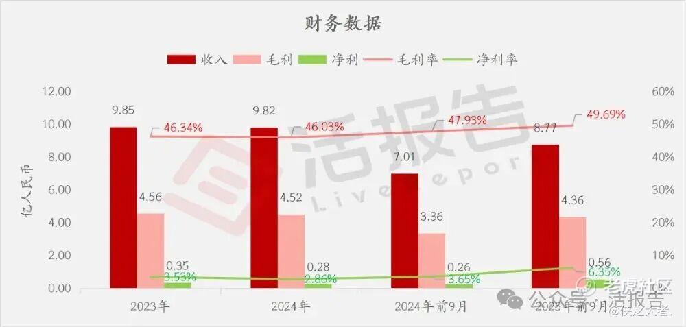 毛利分别约为人民币4.56亿、4.52亿、3.36亿、4.36亿,2025年前9月同比+29.74%;