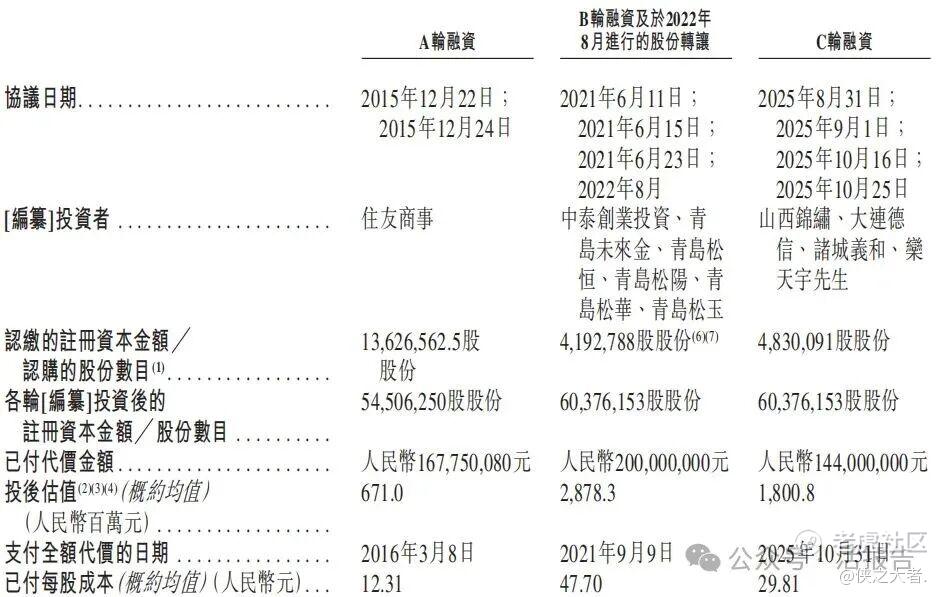公司上市前经历了多轮融资。在2025年的C轮最新融资中,公司的投后估值约为18亿人民币。