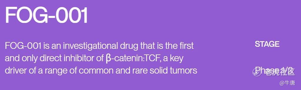 目前,公司的核心药物是一款靶向β-catenin/T细胞因子(TCF)通路的抑制剂FOG-001,目前已经开始临床二期试验的给药。此外,公司也在推进其他在研管线,靶向经过生物学验证的癌症靶点,例如TEAD、NRAS、Pan-KRAS、ERG和Cyclin E1等,包括以前被认为不可成药的靶点。