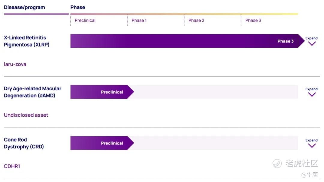 Beacon目前有3个在研管线,其中最为重要的是AGTC-501。AGTC-501原为Applied Genetic(NASDAQ:AGTC)的管线,于2022年11月由Syncona收购AGTC公司得来。目前已经进入临床三期试验阶段,适应症为X连锁视网膜色素变性(XLRP)。