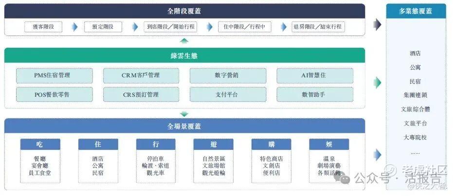 公司已建立以PMS为核心的云端产品生态体系,公司将其称为绿云云链。其中「云」字体现软件模块的云端部署模式,而「链」字则指透过API实现各模块间的无缝连接。