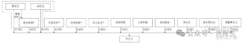 杨铭魁先生直接持股约27.19%,并通过高亮先生及新余夏菊分别间接持股约26.75%、4.87%。杨先生合计持股约58.81%。