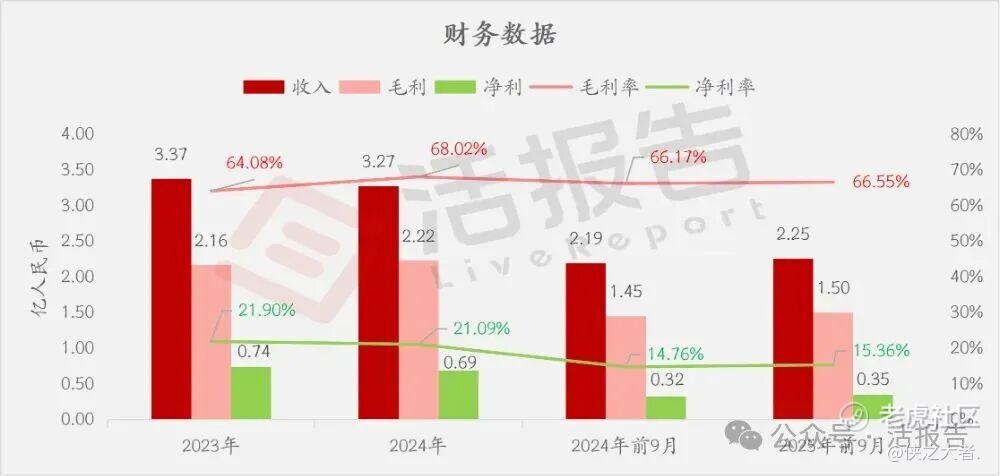收入分别约为人民币3.37亿、3.27亿、2.19亿、2.25亿,2025年前9月同比+2.76%;