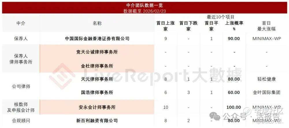 据**大数据统计,绿云软件中介团队共计7家,其中保荐人1家,近10家保荐项目数据表现出色;公司律师共计2家,综合项目数据表现中规中矩。整体而言中介团队历史数据表现良好。