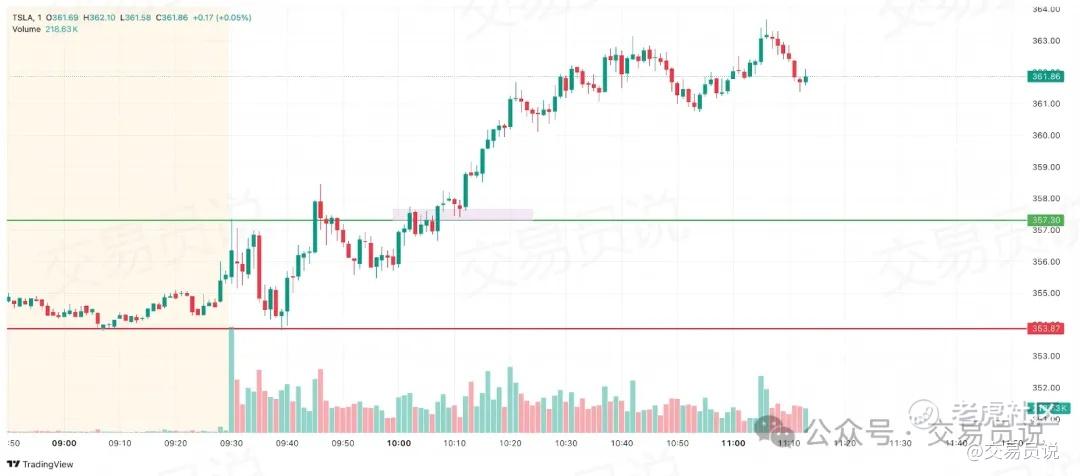特斯拉交易案例 —— 首根K线规则(日内做多)