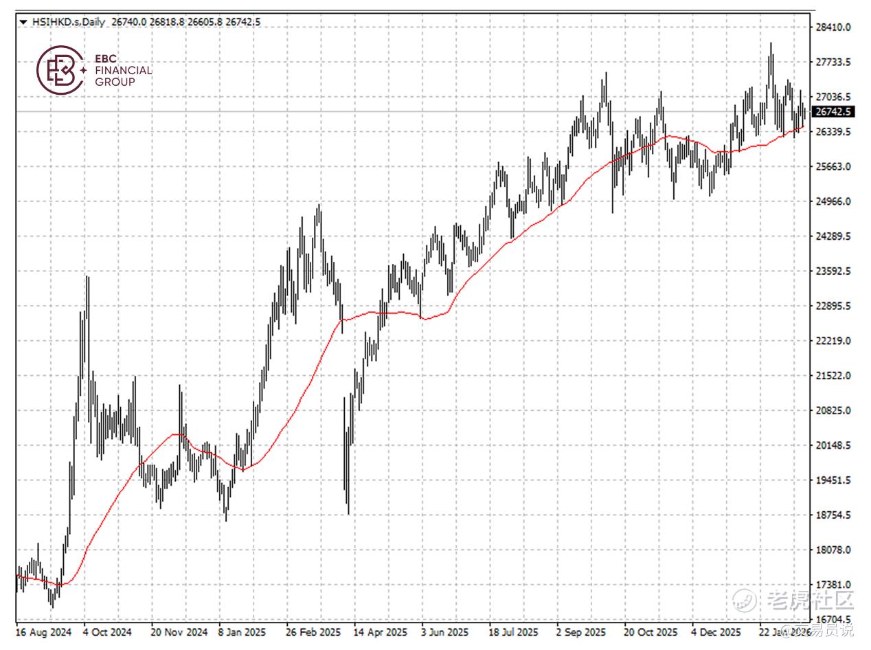 恒生指数持续在50日均线上方运行,但持续的盘整态势表明其上涨动能正在减弱。我们预计短期内该指数将跌破26,600点关口。