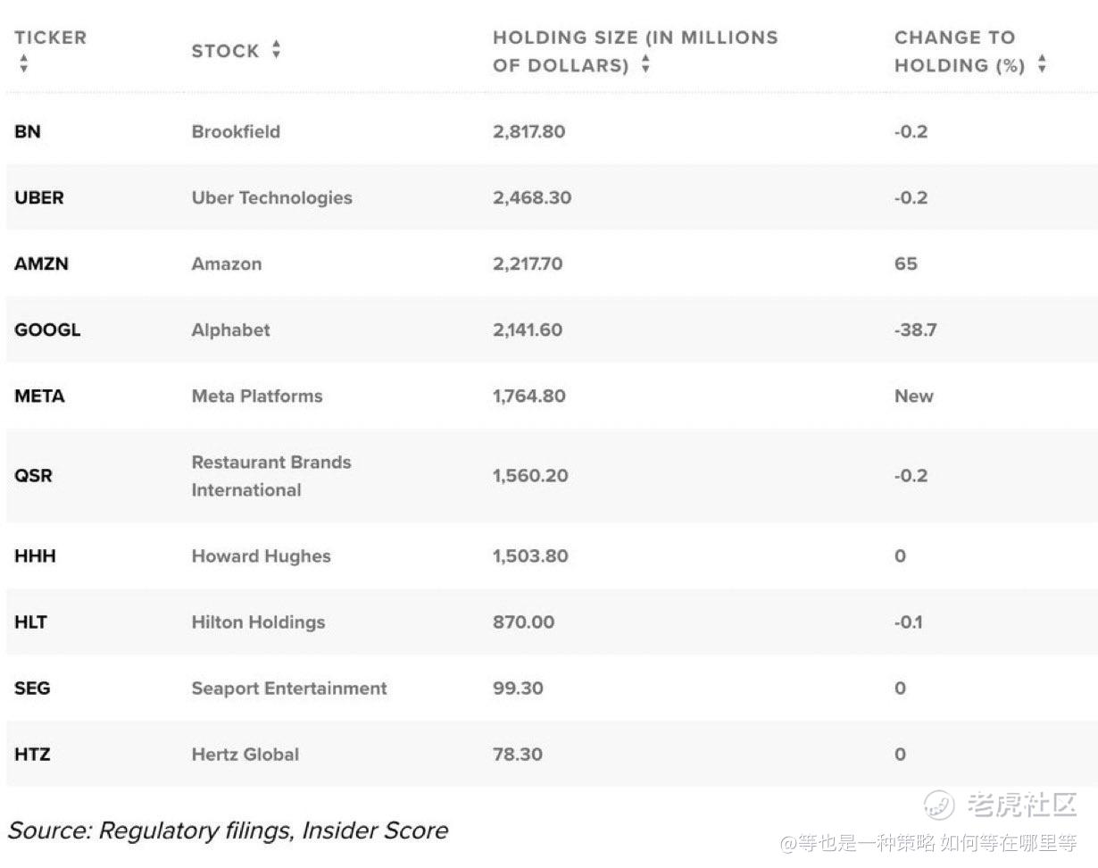 他的基金 Pershing Square 大幅增持 $AMZN,增幅达到 65%。