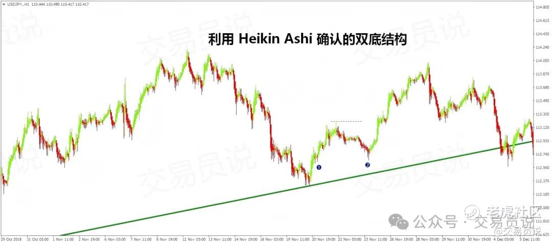 图8:结合Heikin Ashi图表的双底形态