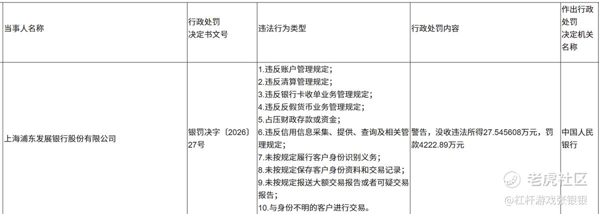 另外杠杆游戏注意到,2026年开年的这张千万级罚单,并非浦发银行近年里的独一份。