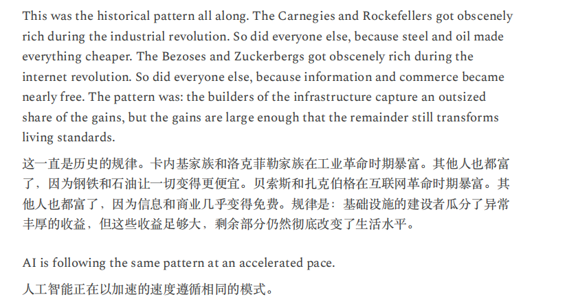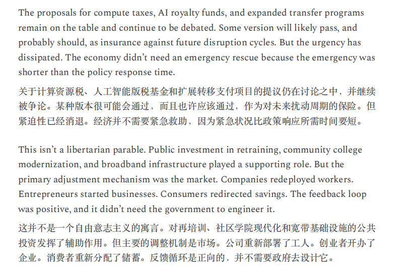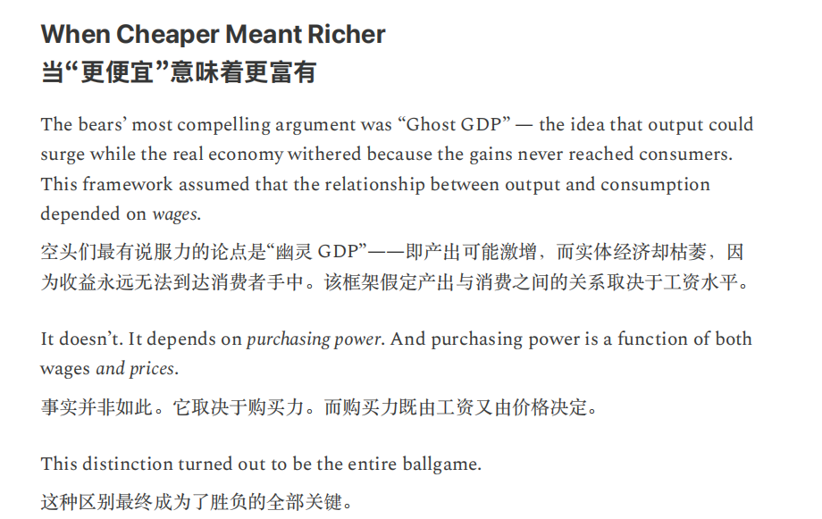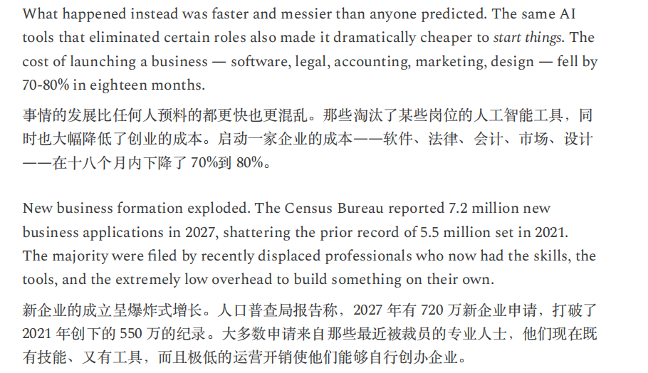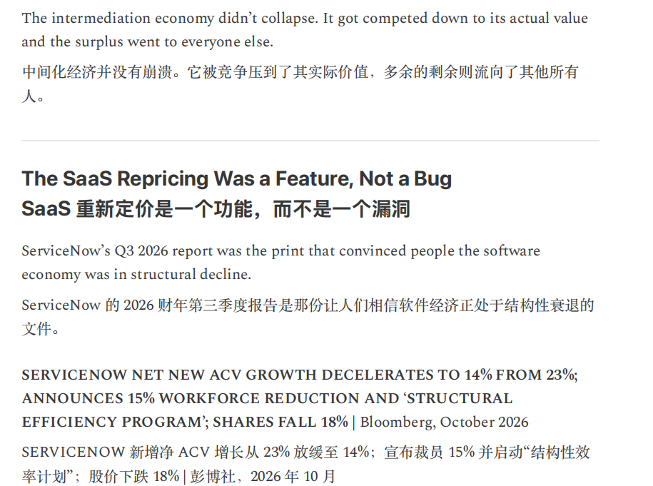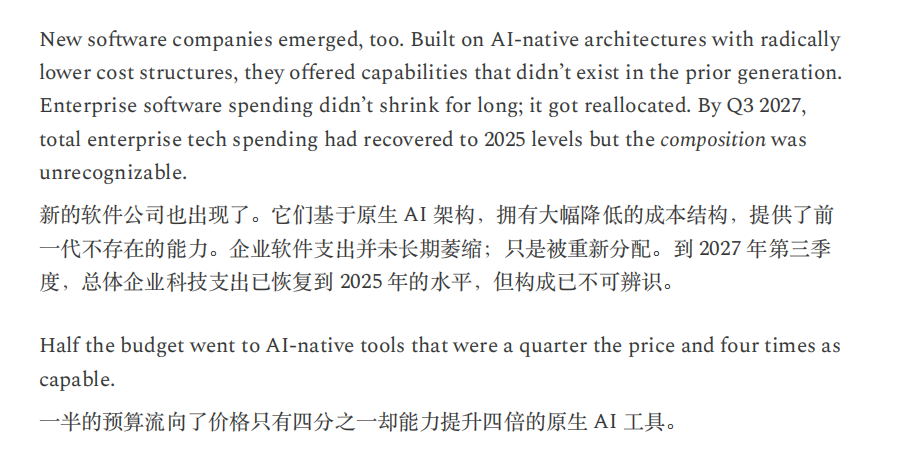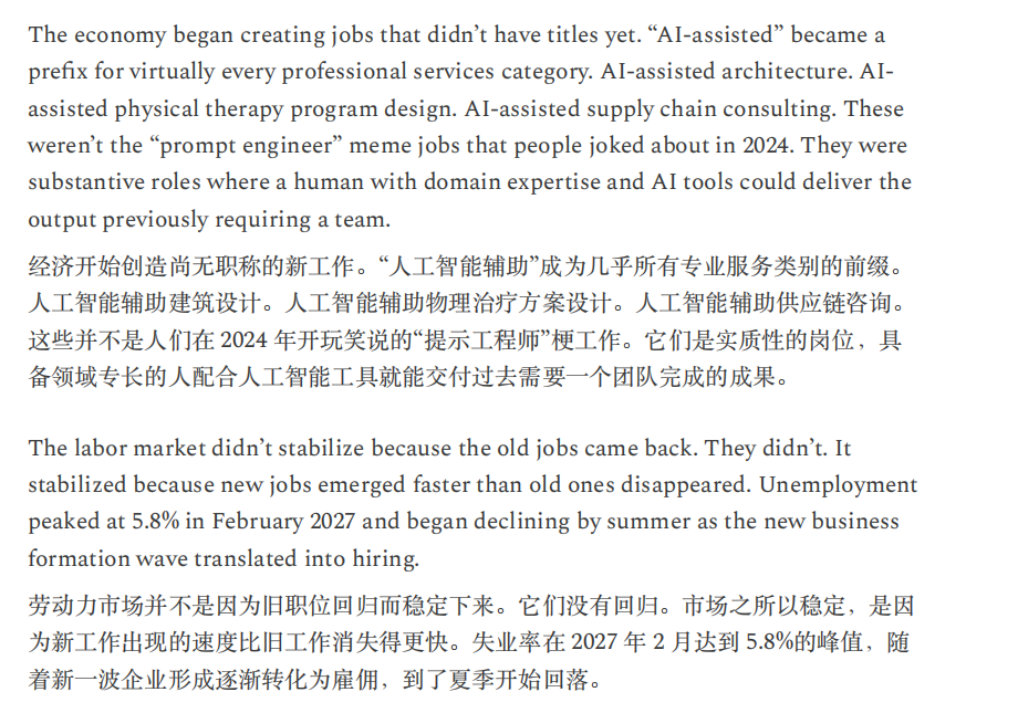 或许,正如Citrini所言,“当机器产生的输出等同于1万名白领,却不消耗一分钱的社会服务时,这不叫经济奇迹,这叫经济瘟疫。”