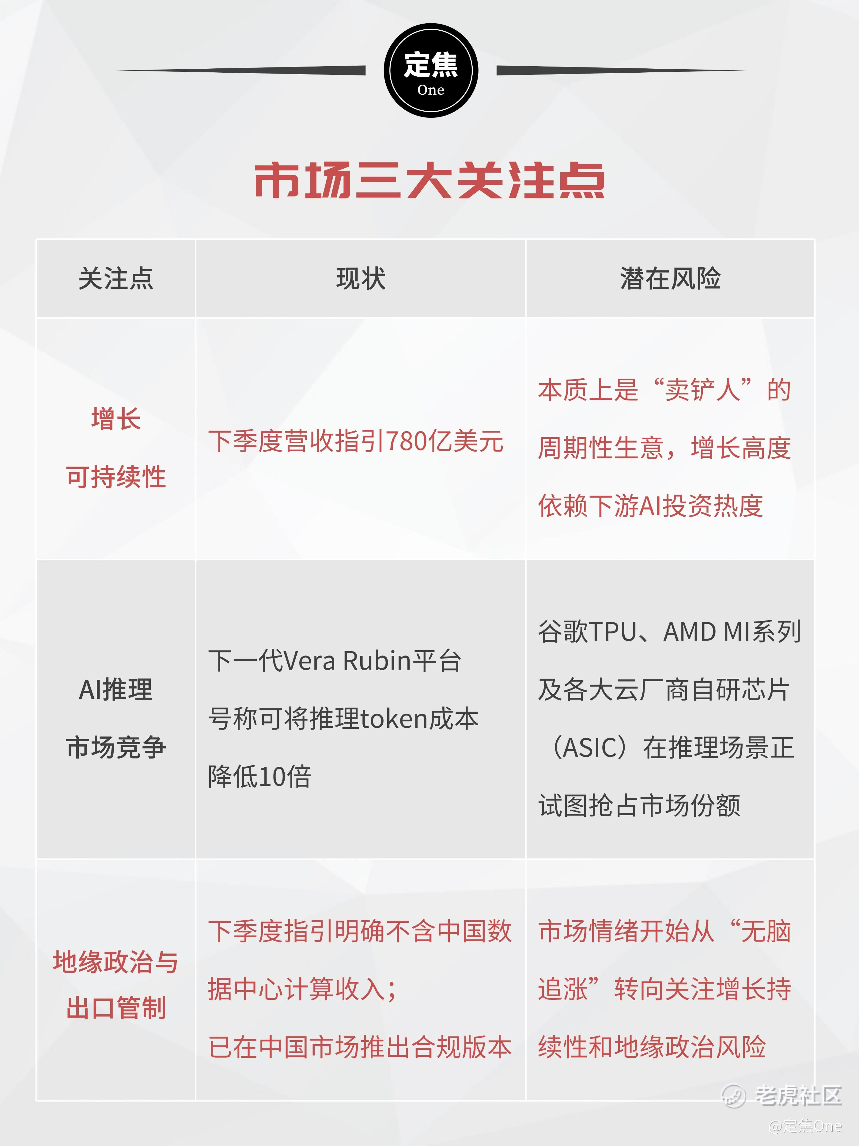 总体来看,英伟达依然是这场AI革命中最确定的受益者。接下来,市场对英伟达的关注点将集中在:Blackwell/Rubin的产能爬坡节奏、出口管制对中国市场的长期影响,以及AI推理需求能否接棒训练需求、成为下一个增长引擎。