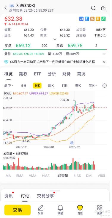 尽管闪迪的基本面强劲,但目前SNDK估值处于历史高位,且存储行业具有较强的周期性,我还是不敢进场,我担心短期波动风险。看看再说吧。[暗中观察]