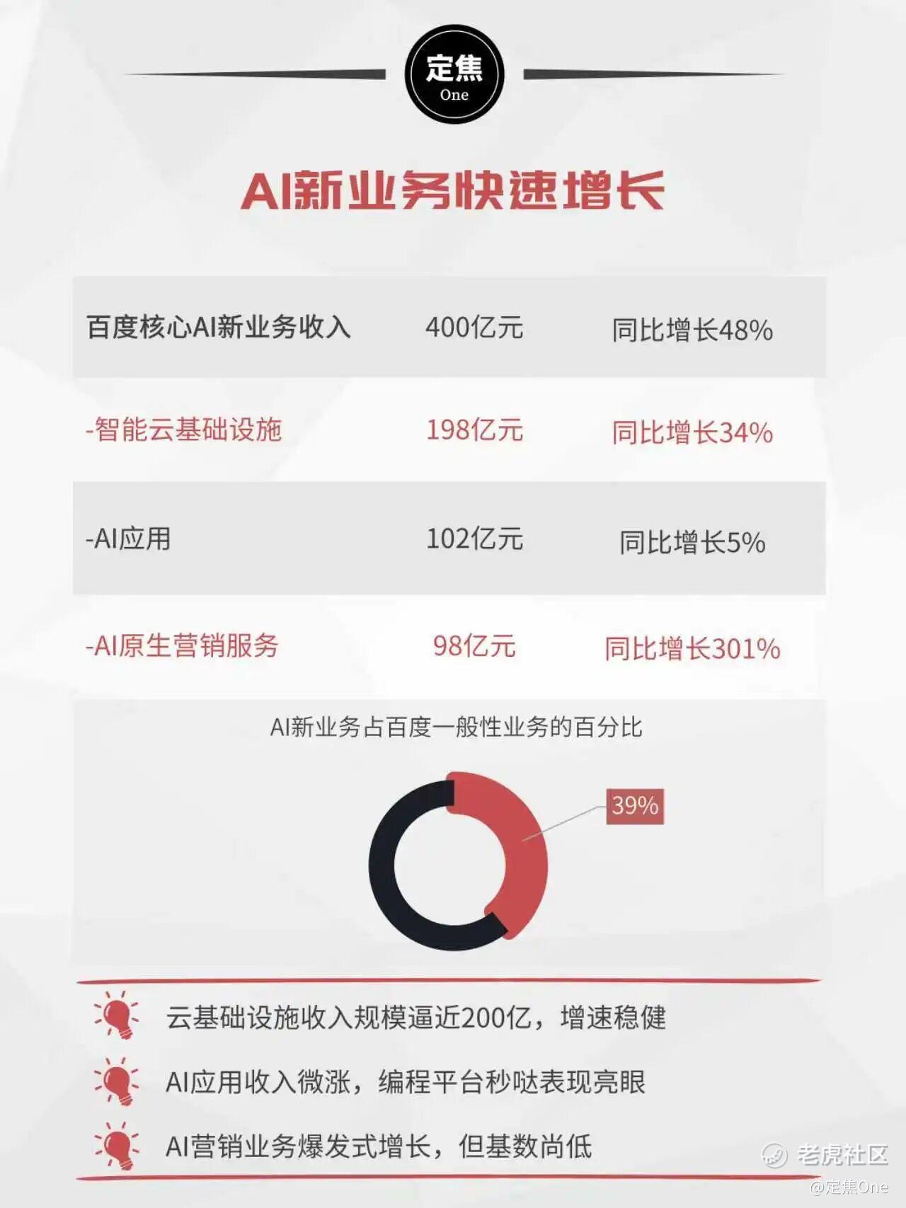 2月26日,百度发布了2025年第四季度及全年财报,呈现出转型期特点,体现在传统业务收缩,AI新业务加速成长,用短期投入换取长期增长。