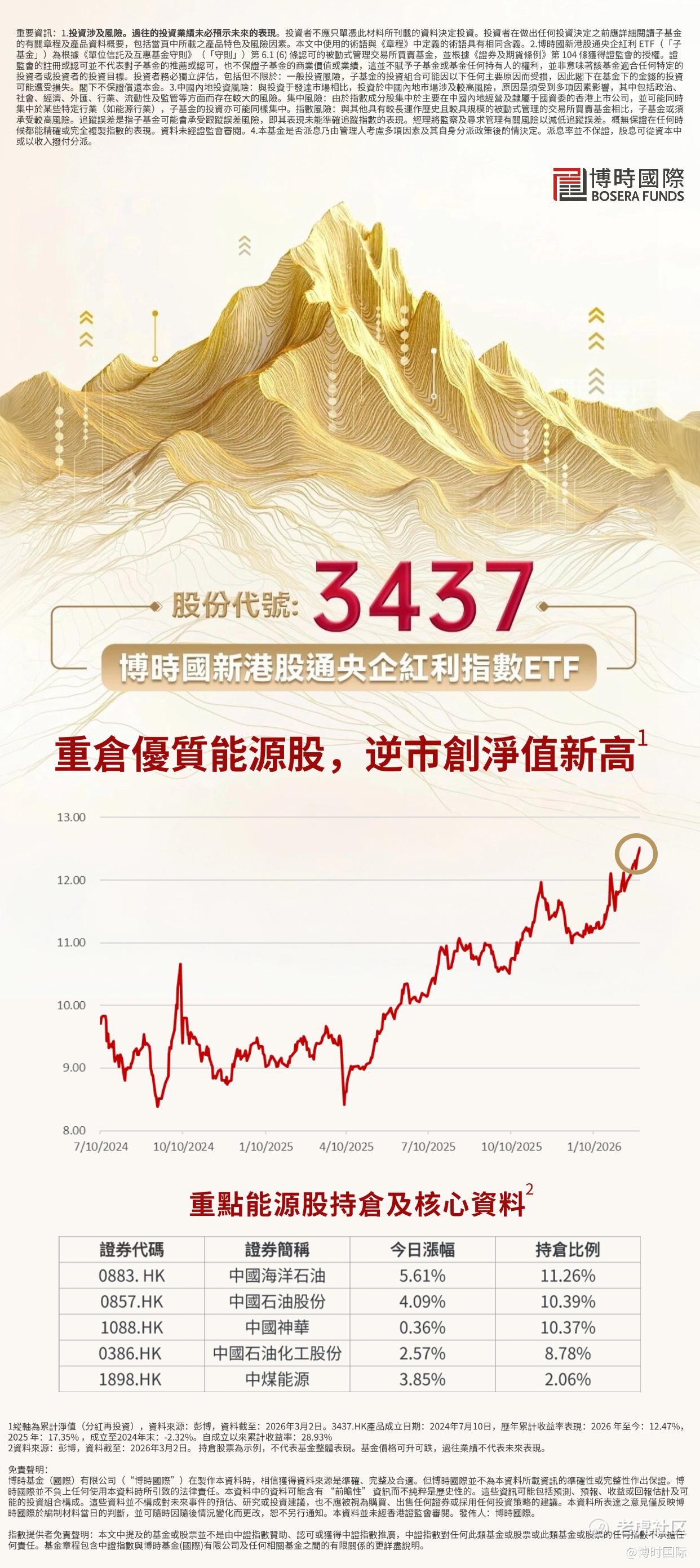 重仓优质能源股,$博时央企红利(03437)$ 博时国新港股通央企红利指数ETF逆市创净值新高
