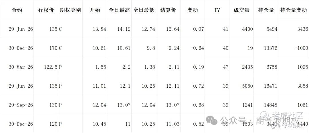 (2)阿里:3月最大持仓范围132.5-165,窝轮牛熊街货分布125-155,今收134.8,下跌1.17%。期权盘路变化超过1000张的仓位如下,基本上都是防守的仓位。