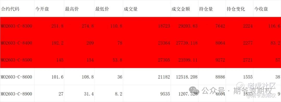 (4)中证1000期权:3月最大持仓范围8200-8500,今收8142.45,下跌3.95%。期权3月主力合约,认购以增仓为主,集中在8000-8900,合计1.4W张;认沽以减仓为主,集中在7200-8600,合计3300张。变化超过1000张的仓位如下,红色是增仓较大的,市场仍然偏乐观。