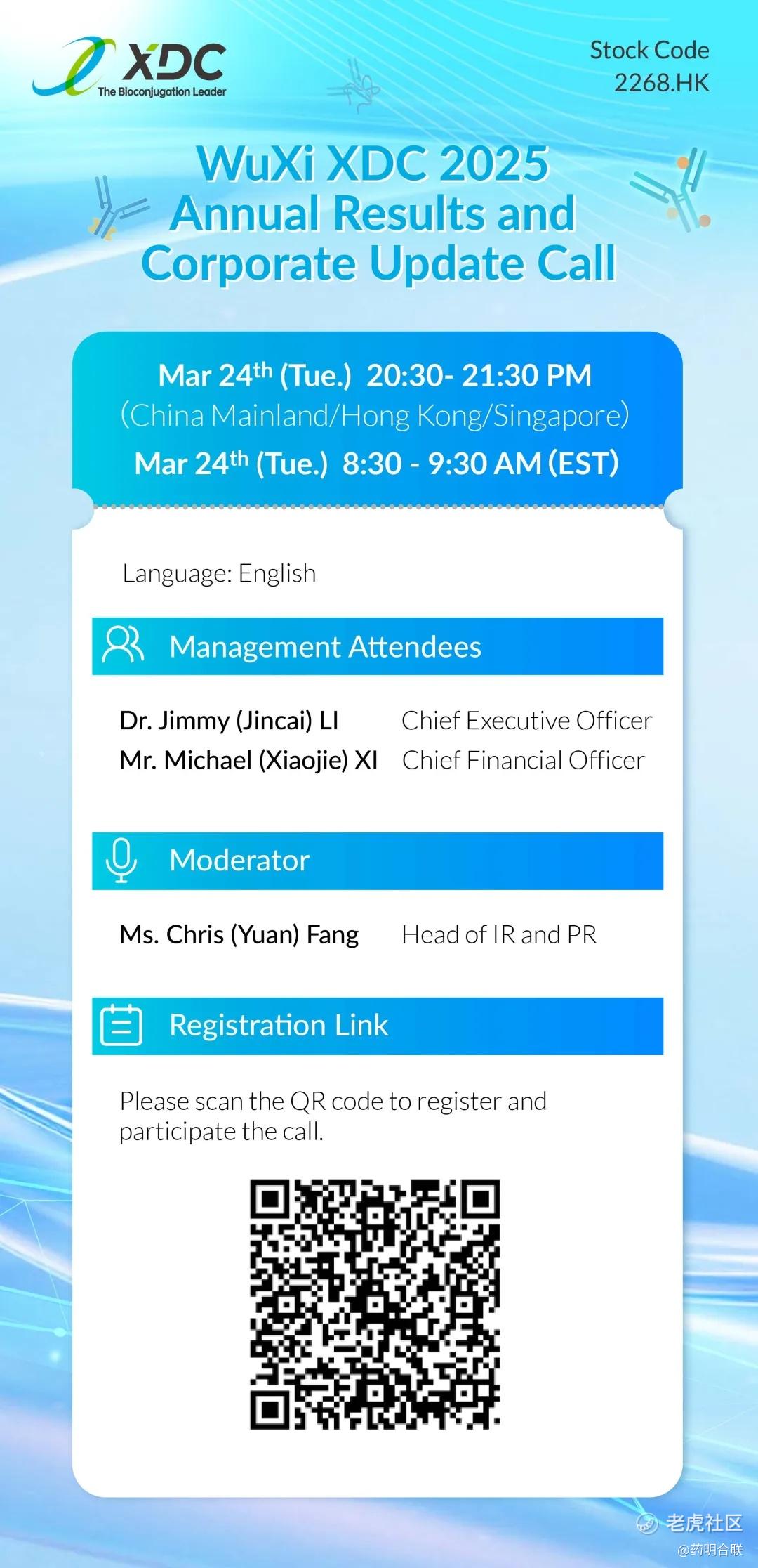 我们诚挚邀请您参加3月24日召开的药明合联2025年全年业绩及业务进展发布会。