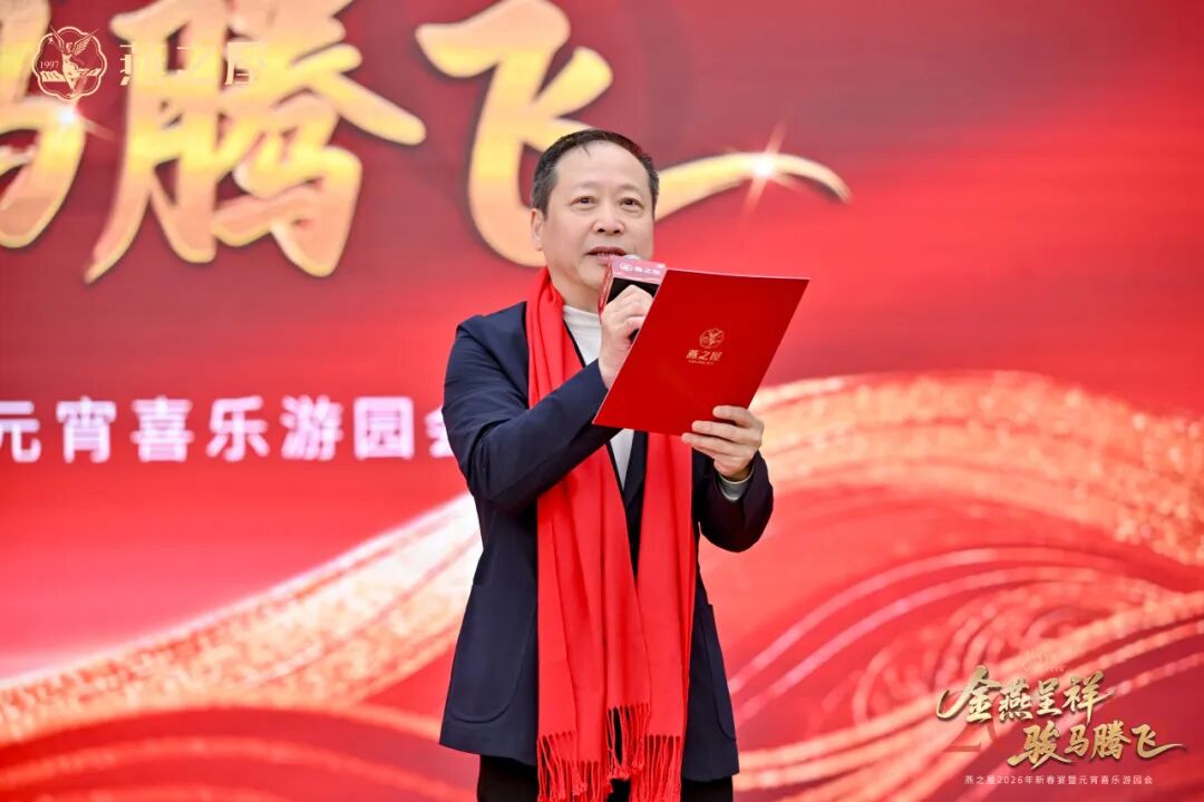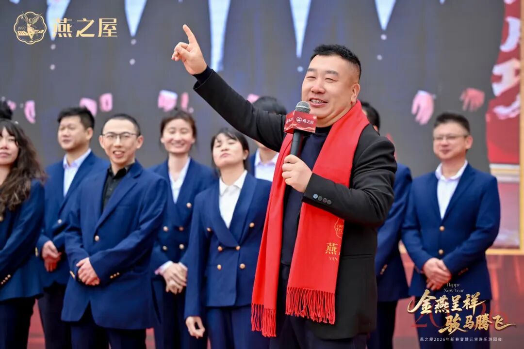 他诚挚的寄语,瞬间点燃了全场:“感谢每一位燕之屋人的努力和付出!新的一年,希望大家都能像骏马一样,既有驰骋千里的冲劲,也有行稳致远的智慧,只要咱们心里装着消费者,手里肯下真功夫,燕之屋就能站得稳、走得远。2026,让我们一起坚守“以客为尊,守正利他,创新实干,行稳致远”的企业价值观,一马当先,再创辉煌!”