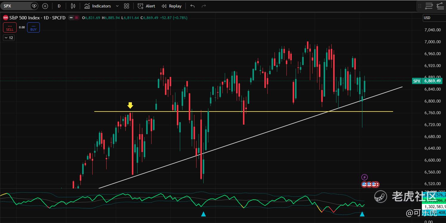 大盘:SPY、VOO:两根K线都站稳了686.4才算反转,VOO则是631.2,SPX是6882,QQQ:短期强支撑601,较差可能支撑582