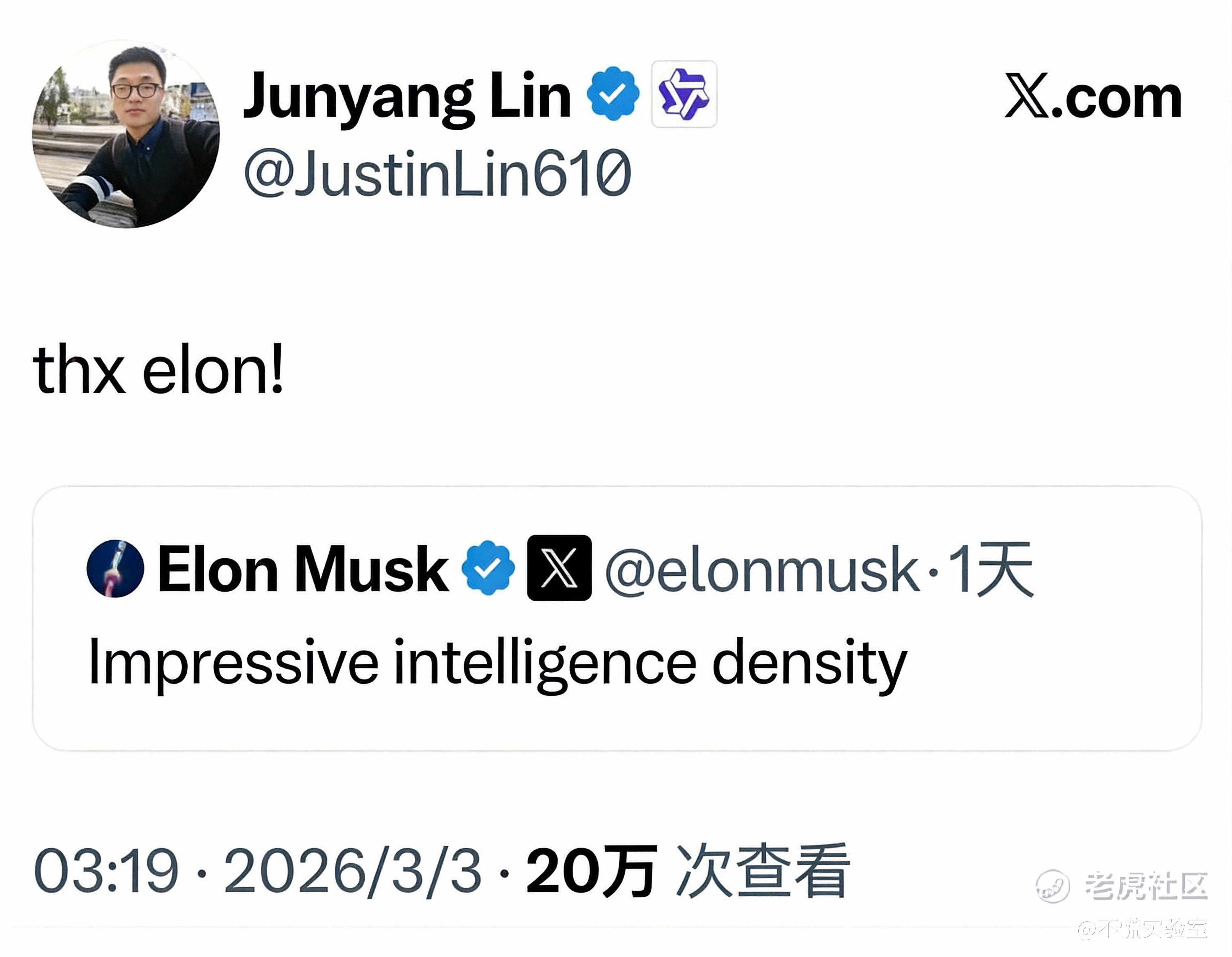 就在此前24小时,Qwen 3.5轻量化版本刚凭借优异性能获得马斯克公开点赞,称其“智能密度令人惊叹”,林俊旸还在社交平台积极互动,Qwen正处于行业高光时刻,如此转折让整个AI圈猝不及防。