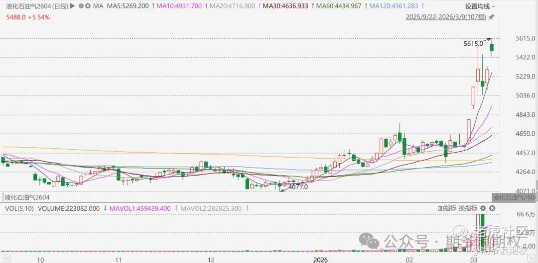 液化石油气2604合约从4570左右涨到5615,大涨22.8%。
