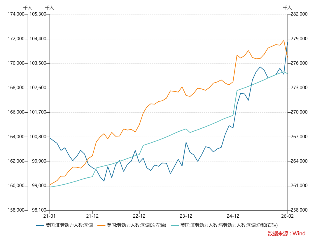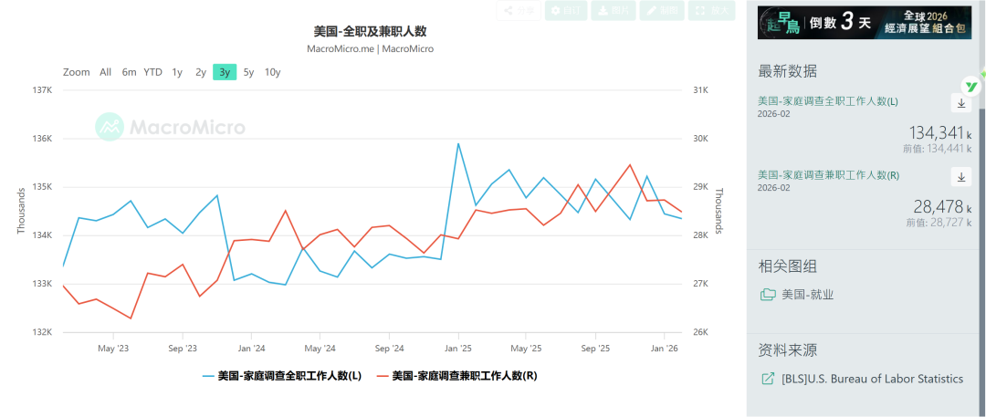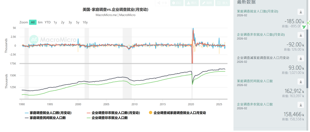 1.因为政府停摆的缘故,实际上BLS并未像以往一样在1月对当年和上一年的人口,季节性调整因子等进行修正,而是在2月进行。本次因为老龄化以及驱逐非法移民的缘故,老龄人口增加,劳动人口减少超百万,也是劳动参与率大跌的原因之一。