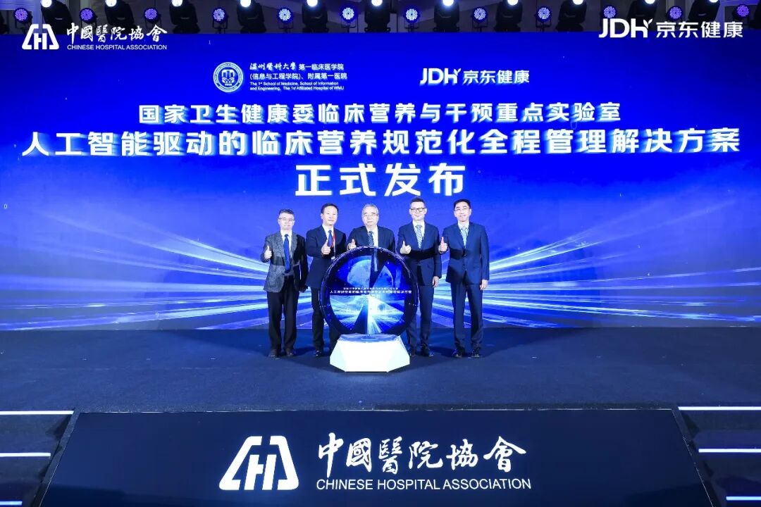 面对难题,京东健康、温医大一附院、国家卫生健康委临床营养与干预重点实验室,共同发布了“人工智能驱动的临床营养规范化全程管理解决方案”。