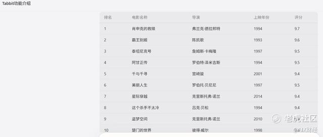 Tabbit整理的电影排名