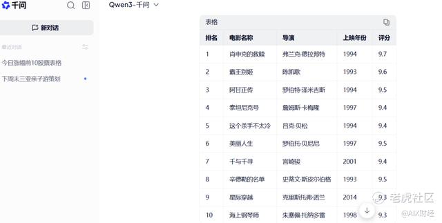 我们进一步降低指令难度。让它们访问豆瓣电影Top250页面( https://movie.douban.com/top250),提取前10部电影的电影名称、导演、上映年份、评分,生成Markdown表格。需要指出的是,夸克依托的是千问大模型和千问助手,且千问已深度融合到夸克中,执行回邮件、跨标签分析等众多智能化功能。