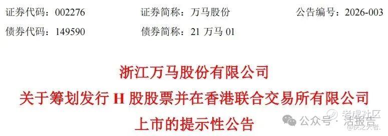 又一个A股公司宣布赴港上市!3月5日午间,万马股份(002276.SZ)发布公告,公司拟筹划发行境外股份(H股)并在港交所上市。