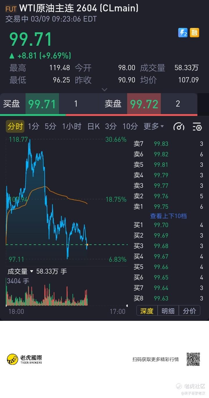 $WTI原油主连 2604(CLmain)$ 如果美国不惩罚以色列并停止对伊朗的战争,那么油价很快又会回升,并飙升到200美元,而美国虽然将释放3亿桶的石油储备,尽管后来美国说要拉(G7)7国集团释放12亿桶的石油储备,如果不停战还是无法解决石油暴涨的问题,只能解暂时性的让石油价格下跌。因为以色列袭击了伊朗30处燃油设施,引起伊朗大范围的石油火灾,这会造成原油进一步上涨,这意味着美国股市将下跌40%或者更多,石油暴涨意味着很多其它企业得倒闭或者破产$纳斯达克(.IXIC)$ $道琼斯(.DJI)$ $标普500(.SPX)$ $恒生指数(HSI)$