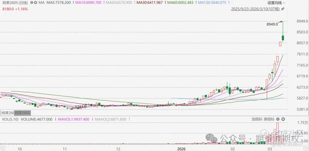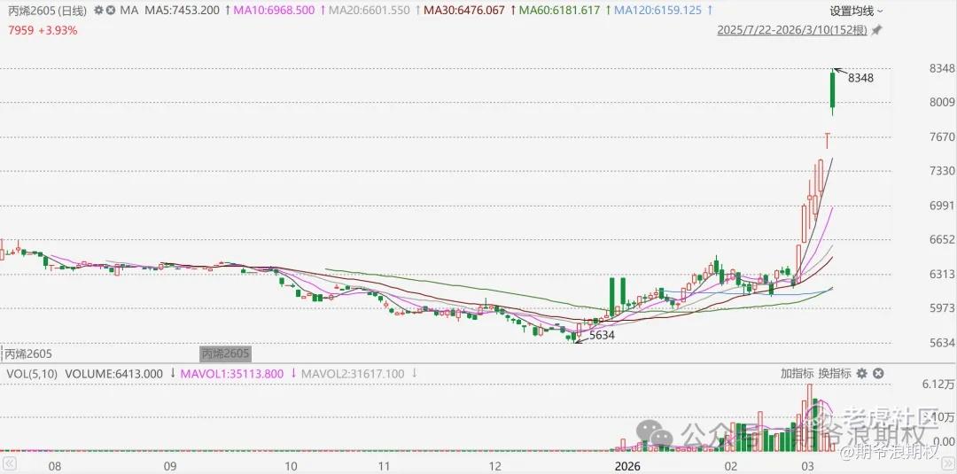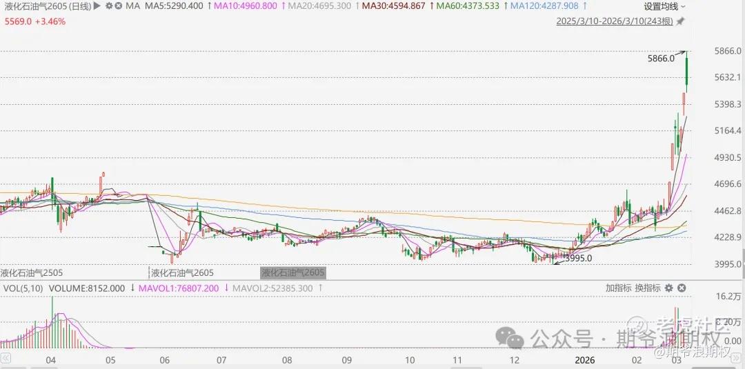 如果接下来中东局势继续加剧,伊朗继续封锁霍尔木兹海峡,或者战争突然结束,有重大利好,以上品种的期货大概率会有大幅剧烈的波动,期权市场百倍行情仍然可以期待。