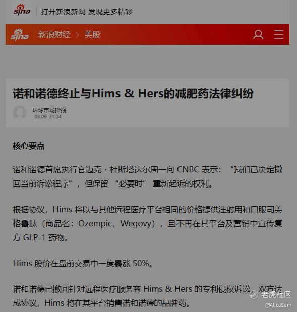 这也是从对抗到合作的成本收益,与其在法庭上进行旷日持久的拉锯战,不如利用Hims的渠道迅速扩大正版药物市场份额。这对诺和诺德是止损而非爆发。