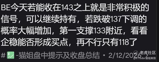 $BE 周一盘中飙升9%+,笨猫2/12给出准确点位133为最近三次回测最低点附近,祝贺拥有的同学,可惜我完全错过了,还是太贪了,想等最低点。和错过的同学一起继续等待机会,目前150是阻力,134附近构筑较强潜在买点。