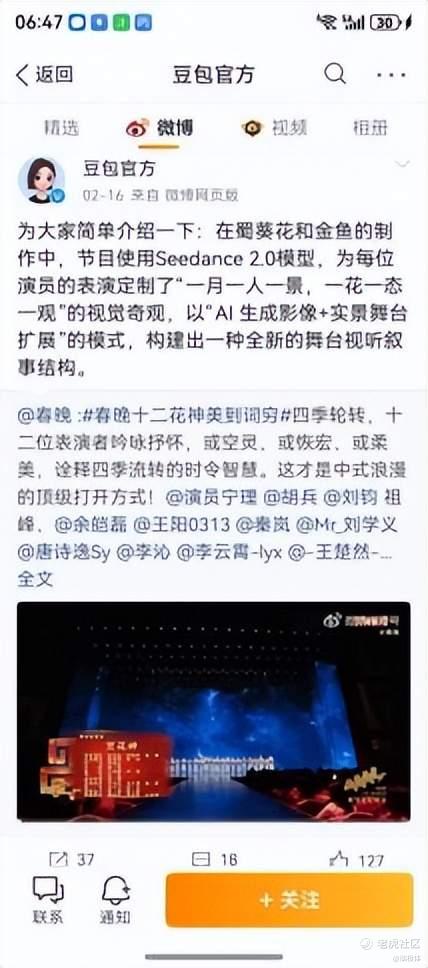 曾经需要下载专门APP、访问网页、输入复杂指令prompt才能使用的AI视频工具,在抖音、剪映等国民级应用中,实现了“拍同款”式的傻瓜操作。春节期间,个性化的AI拜年视频,成了潮流人士新年祝福的新方式。马年春晚,则是AI视频破圈的最高潮,字节跳动的Seedance 2.0模型参与《贺花神》等舞台视觉,让亿万观众直观感受到了中国AI视频生成的效果。