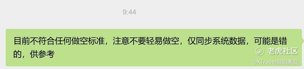 周一美股开盘后14分钟笨猫的交易系统显示不符合任何做空标准,因此提示不要做空。