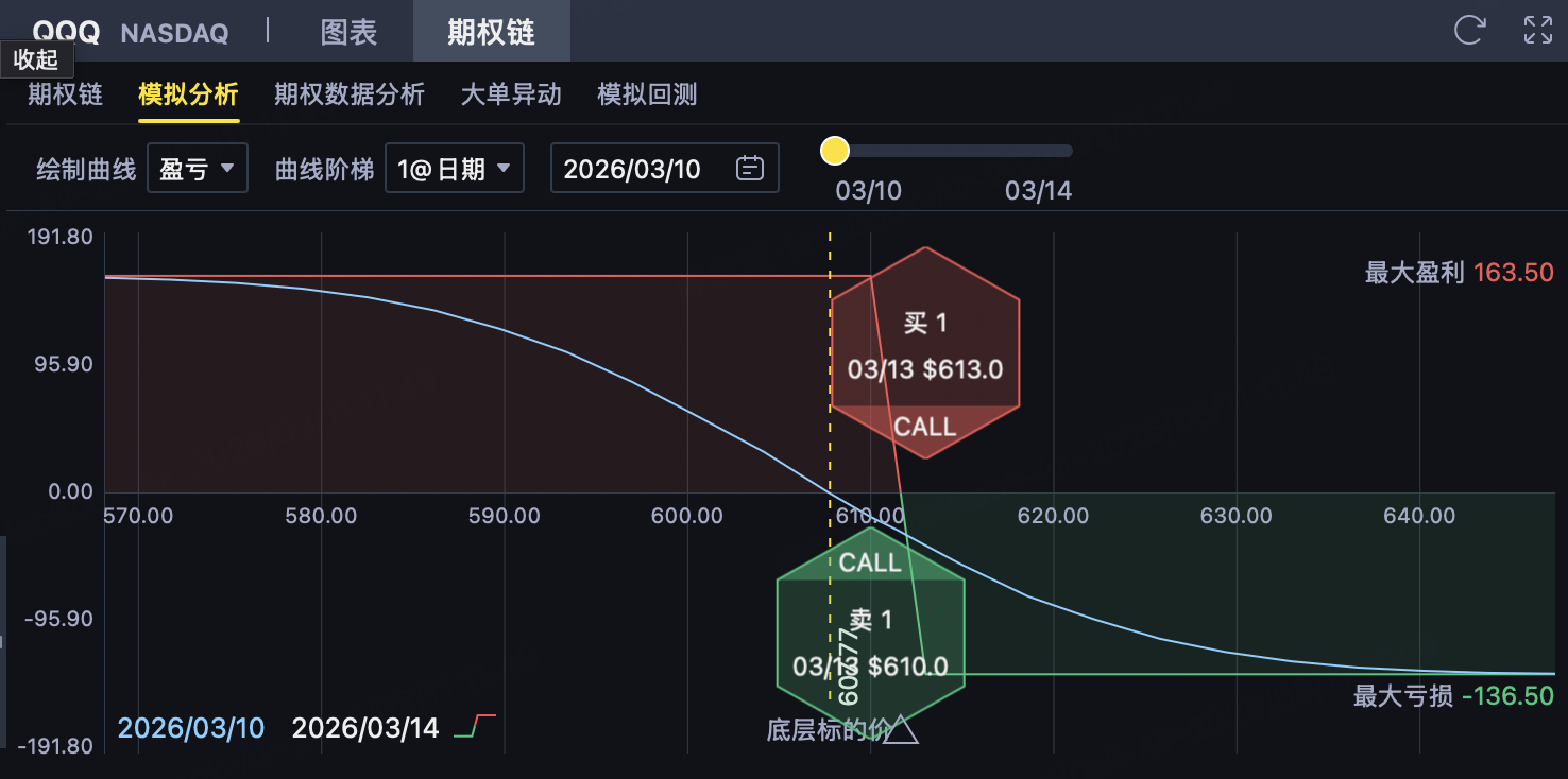 策略的胜率依赖于“价格守住610上方压力、至少不有效突破611.63”的判断;若QQQ在油价回落和风险偏好修复带动下继续快速上行,组合亏损将扩大,但最大亏损已在建仓时封顶。
